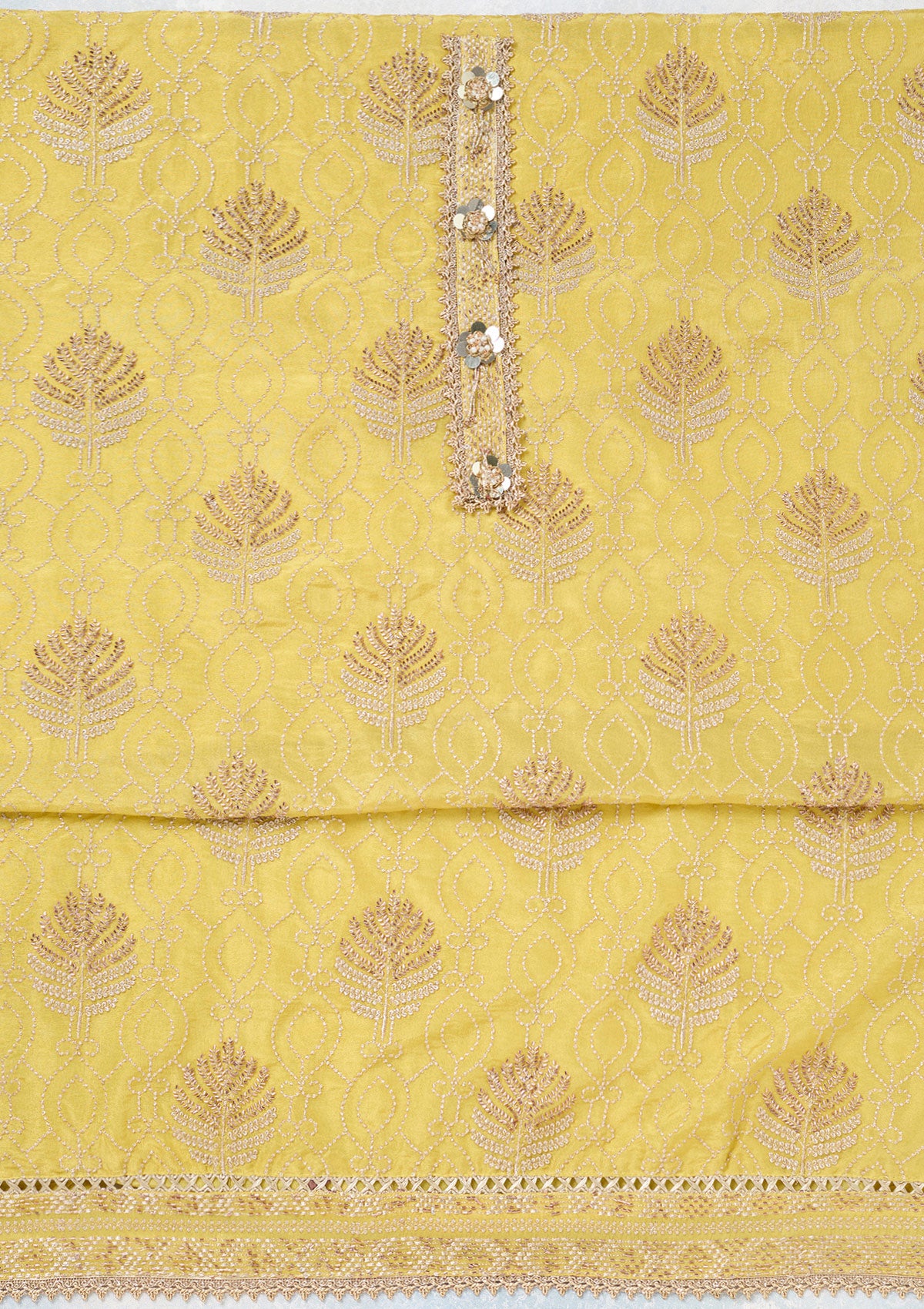 Yellow Zariwork Tissue Unstitched Salwar Suit